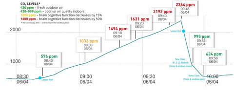 We all breathe in oxygen and breathe out CO₂, which means the CO₂ level in an indoor space increases over time, depending how many people there are in the room and how well it is ventilated.